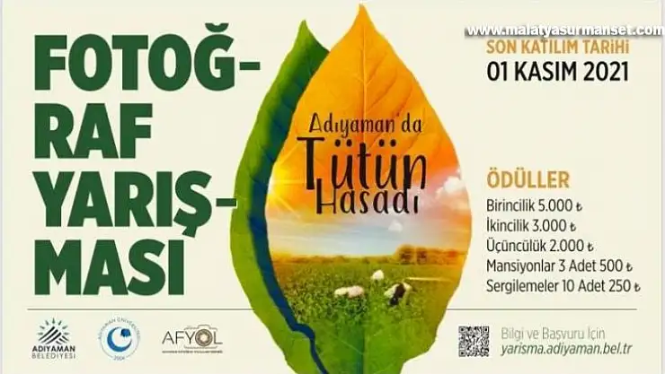 Yapılacak olan yarışmayla ilgili bilgi veren yetkililer, “Adıyaman’ımızın en önemli tarımsal ürünlerinden bir tanesi olan Adıyaman tütünün tanıtımı için ‘Adıyaman’da Tütün Hasadı’ konulu fotoğraf yarışması düzenliyoruz. Yarışmanın başvuruları başladı. 1 Kasım 2021 tarihine kadar devam edecek olan başvurular için bilgi almak isteyen vatandaşlarımız, yarisma.adiyaman.bel.tr adresinden hem merak ettikleri sorulara cevap bulabilir, hem de başvurularını bu adresten yapabilirler. Yarışma sonunda dereceye girecek olanlara çeşitli ödüller verilecek. Bu kapsamda, birinciye 5 bin TL, ikinciye 3 bin TL, üçüncüye 2 bin TL, 3 adet mansiyon ödülü için ise 500’er TL ve 10 adet sergileme için ise 250’şer TL ödül dağıtılacak. Tüm fotoğraf meraklılarını bu yarışmamıza katılmaya davet ediyoruz” diye konuştu.