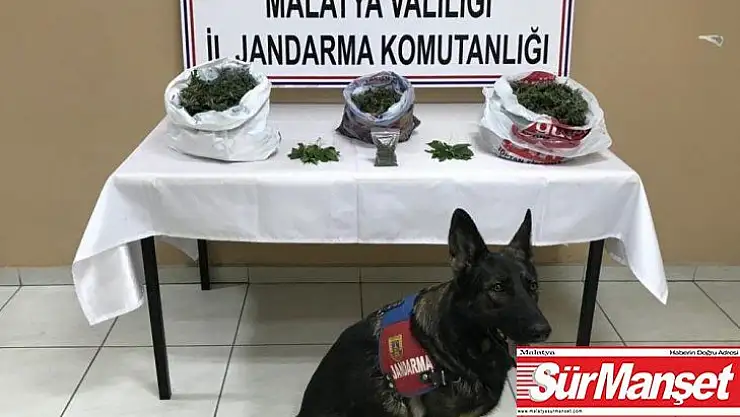 Malatya'da uyuşturucu ile mücadele kapsamında jandarma ekipleri tarafından gerçekleştirilen operasyonda narkotik köpeği 'Kitap'ın tepki vermesi ile yaklaşık 4 kilogram kubar esrar maddesi ele geçirildi.