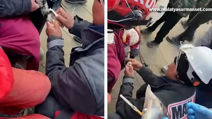 Kahramanmaraş merkezli 7.7 ve 7.6 büyüklüğündeki iki depremin ardından afet bölgesine giden Menemen Belediye Arama Kurtarma ekibi, enkazdan kurtarılan kediye serum takarak hayata tutunmasına yardım etti.