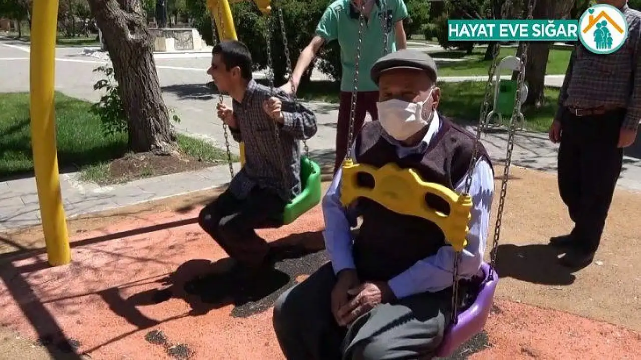 Adıyaman’da yaklaşık 2 ay sonra sokağa çıkan 79 yaşındaki adam, salıncakta sallanarak dışarı çıkmanın tadını çıkarttı.