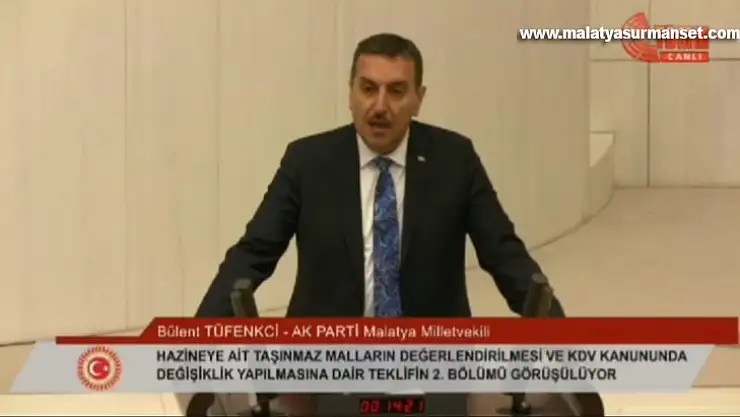 Tüfenkci, TBMM’de ’Hazineye Ait Taşınmazların Değerlendirilmesi ve Katma Değer Kanununda Değişiklik Yapılması’ hakkında bir konuşma yaptı.