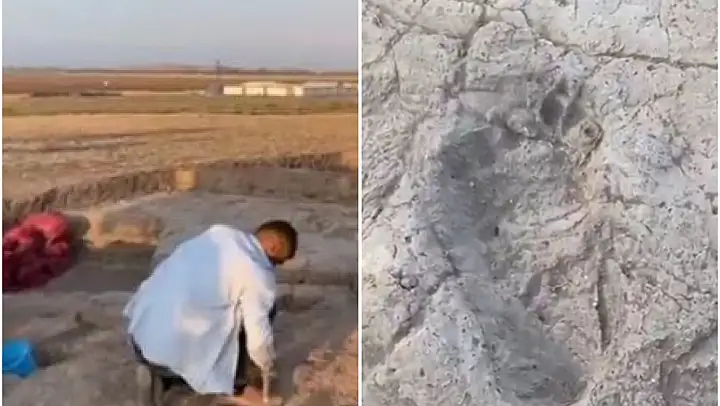 'Tell Kurdu Höyük'te milattan önce 5 bin 200 yılına ait katmanlarda yürütülen çalışmalarda çok nadir rastlanan bir bulguya ulaşıldı. Yağmurla yumuşamış çamur zemin üzerinde yürüyen insanlara ait 5 ayak izi tespit edildi. Bu izler, 7 bin yıl öncesine ait çarpıcı bir insan hikyesini bizlere aktarıyor. Geleceğe Miras Projemiz ile, 60 yılda yapılanı 4 yılda başarma hedefiyle tarihi ve kültürel mirasımıza sahip çıkmayı sürdürüyoruz.'