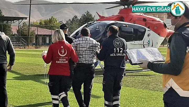 Malatya'nın Darende ilçesinde parmağını kıyma makinesine kaptıran hasta ile yüksek tansiyon hastası kadının imdadına 112 hava ambulansı yetişti.