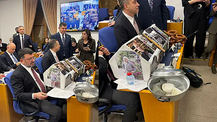 TBMM Plan ve Bütçe Komisyonu'nda, en düşük emekli maaşının 20 bin liraya çıkarılmasını öngören kanun teklifi görüşüldü. CHP milletvekilleri, toplantıya emekli olup çalışmak zorunda kalan ve iş cinayetlerinde yaşamını yitiren kişilerin fotoğraflarının yer aldığı bir tabut maketiyle katıldı. CHP Malatya Milletvekili Veli Ağbaba, AKP'nin 20 bin liralık kanun teklifini de yırtıp attı. CHP'li Veli Ağbaba, eline çekiç alarak 'Bu çiviyi birazdan AK Partililer çakacak. Bu tabuta çakılan son çivi olacak' dedi.