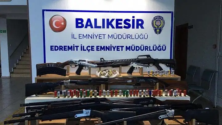 Balıkesir İl Emniyet Müdürlüğü Asayiş Şube Müdürlüğü ile İlçe Emniyet Müdürlüğü ekipleri tarafından Balıkesir genelinde son 48 saat içerisinde 35 adet silah yakalandı. Uygulamalar neticesinde Edremit ilçesinde 5 adet kurusıkı silah, 185 adet fişek, 2 adet ruhsatsız ateşli silah, 16 adet yivsiz av tüfeği, Ayvalık ilçesinde 2 adet ruhsatsız ateşli silah, 1 adet kurusıkı silah ile 20 adet fişek, Burhaniye ilçesinde 1 adet ruhsatsız ateşli silah,1 adet yivsiz av tüfeği, Bandırma ilçesinde 1 adet yivsiz av tüfeği, 1 adet kurusıkı silah ile 9 adet fişek, Manyas ilçesinde 1 adet yivsiz av tüfeği ve 18 adet fişek, Balıkesir il merkezinde 2 adet kurusıkı silah, 1 adet yivsiz av tüfeği ve 1 adet ruhsatsız ateşli silah ele geçirildi. Emniyet ekipleri tarafından silahlara el konulurken, silahlarla yakalanan şahıslar hakkında yasal işlem yapıldı.