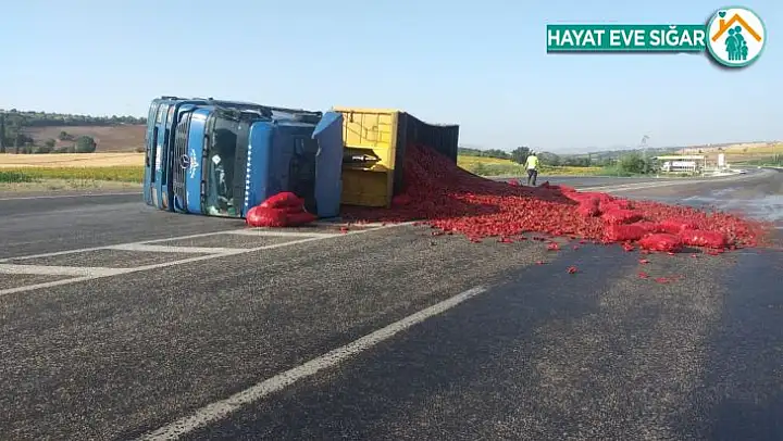 Adıyaman'ın Gölbaşı ilçesinde biber yüklü tırın devrilmesi sonucu 1 kişi yaralandı.