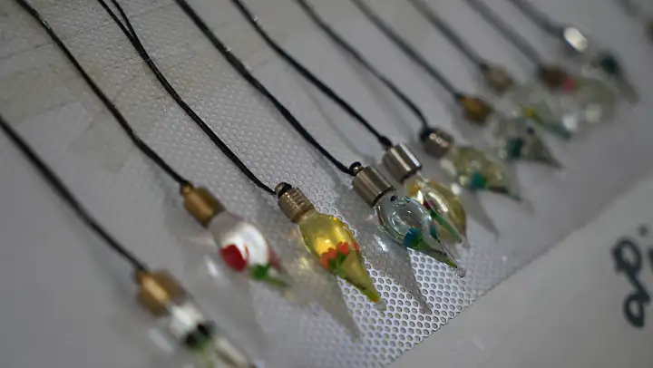Samangül, pirinç tanesi bulunan cam tüplü kolyelerin eskisi gibi rağbet görmediğini, vatandaşların şu anda daha çok fotoğraf, bebek dişi ve saç kullanılarak yapılan kolyelere ilgi gösterdiğini dile getirdi.