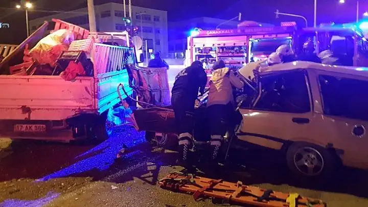 Çanakkale'de kırmızı ışıkta bekleyen kamyonete otomobilin çarpması sonucu meydana gelen kazada 1'i ağır 2 kişi yaralandı.