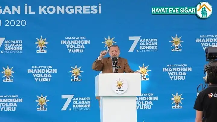 Yeni Malatya Belediye binası yanındaki meydanda gerçekleştirilen AK Parti 7. İl Olağan Kongresinde bir konuşma yapan Cumhurbaşkanı Erdoğan, Fransa Cumhurbaşkanı Macron ve Hollanda Milletvekili Wilders'e tepki gösterdi. Cumhurbaşkanı Erdoğan, 'Türkiye'nin demokrasi ve kalkınma mücadelesi uzun ve meşakkatli süreci ifade eder. Bir yandan halka rağmen halkçılık, bir diğer yandan güya halkının yanında olduğunu ifade ederken halkının duygularını sömürenler. Güya ülkeyi asilleştirmek isteyen jakoben bir zihniyet, diğer yanda ise gönlü ve gözü milletle aynı istikamete bakan bir anlayış var. Milletimizin değerlerine savaş açanlar, kimi zaman darbe ve siyasi ve ekonomik krizlerle somutlaştığı şekliyle dışarıdan destek almışlardır. Dünyanın pek çok yerinde ve bölgemizdeki kimi ülkelerde de benzer mücadeleler yaşandı. Bu ülkelerin bir kısmında kendi tarihine, inancına, kültürüne yabancı, hatta husumet besleyen yönetimlerin yol açtığı felaketlere şahit olduk. Son zamanlarda Fransa'nın başındaki zat şaşırmış. Yatıyor kalkıyor Erdoğan ile uğraşıyor. Sen önce kendine bak, nereye gidiyorsun ona bak. Bu bir vaka. Bunun için bir kontrolden geçmesi lazım. Hollanda'da milletvekili müsveddesi var. O da kalkmış bizimle ilgili bir şeyler yapıyor. Bir defa haddini bil, haddini bil. Kiminle yol yürüdüğünü hiç hesap ettin mi? Haddini bileceksin. Faşizm bizim kitabımızda yok, sizin kitabınızda var. Faşizmi Almanya'da yaşadık, İtalya'da yaşadık. Nazizmi yaşadık. Siz onlarla yol yürüdünüz. Bizim kitabımızda sosyal adalet var. Biz bu sosyal adaletle yol yürüyoruz' dedi.
