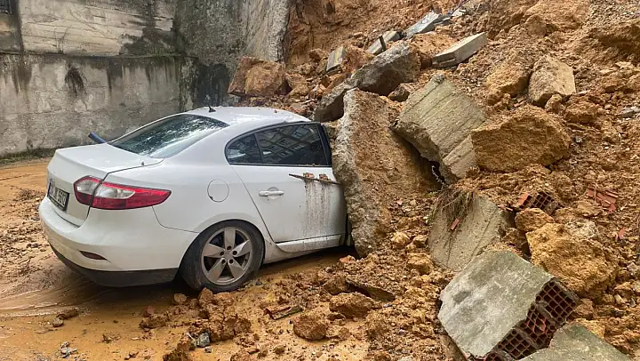 İstinat Duvarı Çöktü 3 Araç Zarar Gördü