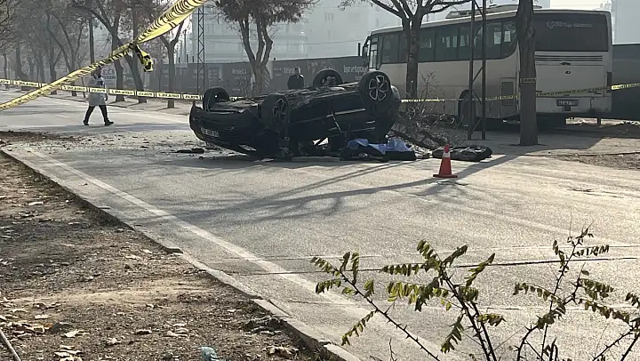 Öte yandan, yaşanan kaza anı güvenlik kamerasına anbean yansıdı. Görüntülerde caddede araçlar seyrederken, iki aracın arasından makas atan otomobilin kontrolden çıkarak ağaca çarpıp karşı şeride takla attığı görülüyor.
