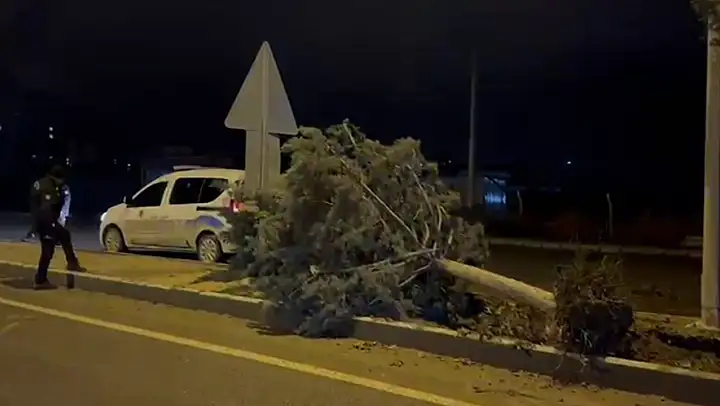 Fırtına nedeniyle ağaçlar devrilirken, tabelalar söküldü, araçlarda hasar oluştu.