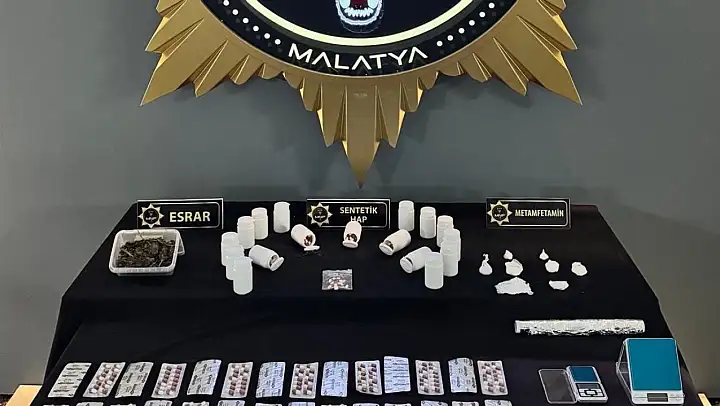Malatya'da, İl Emniyet Müdürlüğü Narkotik Suçlarla Mücadele Şube Müdürlüğü ekipleri tarafından 'torbacı' olarak tabir edilen sokak satıcılarına yönelik 3 ay süren teknik ve fiziki takip sonrasında operasyon düzenlendi. Projeli dosya çerçevesinde belirlenen adreslere eş zamanlı düzenlenen operasyonda bin 340 adet sentetik ecza hap, 140 gram esrar, 48,5 gram metamfetamin ve 2 adet hassas terazi ele geçirildi.