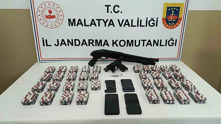 Malatya'da jandarma tarafından düzenlenen operasyonda sentetik hap ve silahlar ele geçirildi, 4 kişi gözaltına alındı.