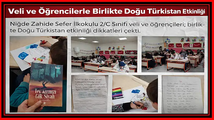 Niğde Zahide Sefer İlkokulu 2/C sınıfı öğretmeni, öğrencileri ve velileriyle birlikte düzenlediği Doğu Türkistan etkinliğiyle örnek bir çalışmaya imza attı.