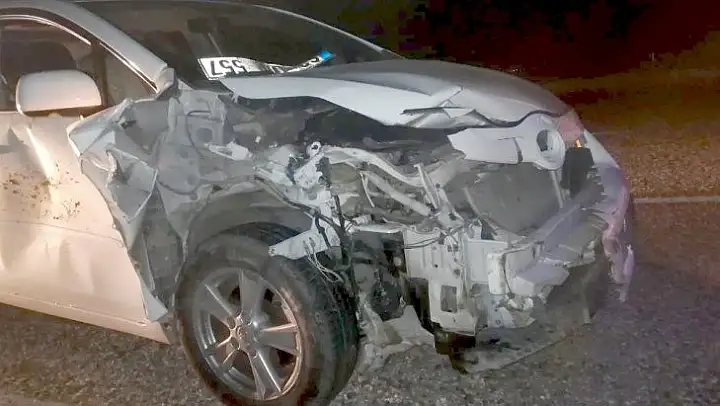 Adıyaman'da, aniden yola çıkan domuz, otomobilin çarpması sonucu telef oldu. Domuza çarpan otomobil, adeta hurdaya döndü.