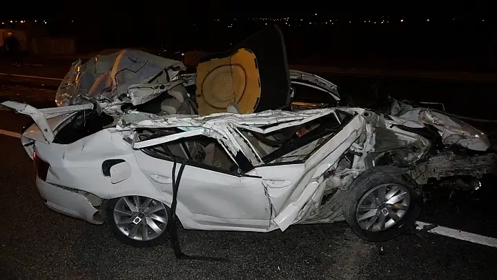 Park halindeki tıra çarpan otomobil hurdaya döndü: 2 yaralı