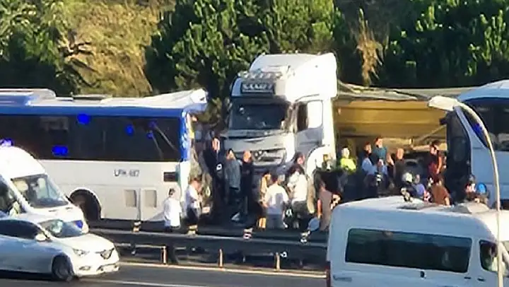 Otobüs ve hafriyat kamyonunun da aralarında bulunduğu çok sayıda aracın karıştığı kazada, ilk belirlemelere göre bir kişi hayatını kaybetti, dokuz kişi ise yaralandı.