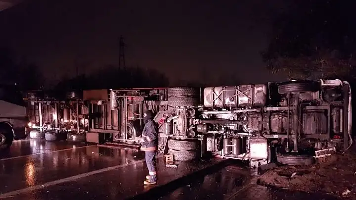 Kaza, Anadolu TEM Otoyolu Sapanca ilçesi mevkiinde meydana geldi. Edinilen bilgiye göre, 45 yaşındaki Mehmet B. idaresindeki 27 V 4201 plakalı tır İstanbul istikametine doğru seyir halindeyken sürücüsünün direksiyon hakimiyetini kaybetmesi sonucu kontrolden çıktı. Kontrolden çıkan tır yola devrildi. Kaza sebebiyle Anadolu TEM Otoyolu İstanbul istikameti bir süre trafiğe kapandı.