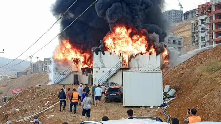 Kahramanmaraş'ın Dulkadiroğlu ilçesi Altınova Mahallesi'nde bulunan TOKİ deprem konutları şantiyesinde, işçilerin kaldığı yatakhane bölümünde yangın çıktı.