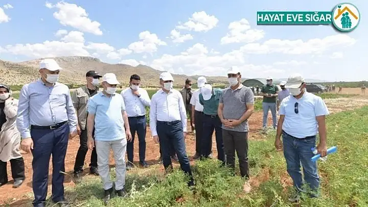 Vali Aydın Baruş, İl Tarım ve Orman Müdürü Tahir Macit, Kayısı Araştırma Enstitüsü Müdürü Abdullah Erdoğan, Ziraat Mühendisleri Odası Başkanı Fevzi Çiçek ve Cumhuriyet Örnek Mahalle Muhtarı Mehmet Çelik ile birlikte Yeşilyurt Belediyesi tarafından Cumhuriyet Örnek ile Akçadağ Kırlangıç mahallelerinin birleşme noktasındaki 177 dönümlük alana kurulan Tarımsal Üretim-ARGE Sahasını inceledi.