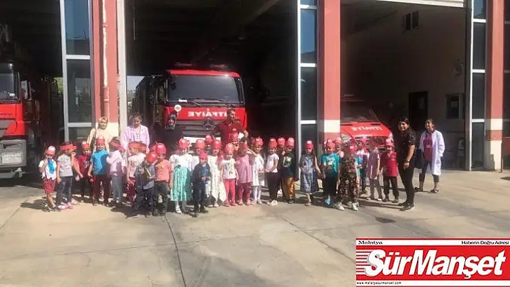 İtfaiyecilik Haftası dolayısıyla Adıyaman Belediyesi İtfaiye Müdürlüğünü ziyaret eden anaokulu öğrencileri, itfaiyecilerin çalışmaları hakkında bilgi aldı.