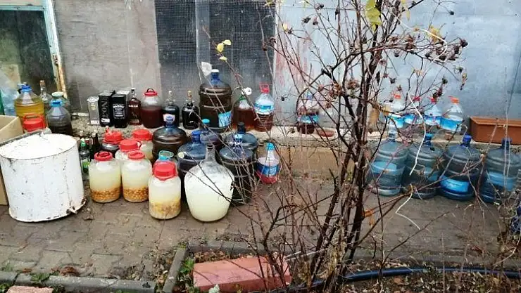 Adeta bir imalathaneye dönüştürülen evde yapılan aramalarda plastik damacanalar içerisinde 600 litre civarında sahte içki ve içki üretiminde kullanılan malzemeler ile düzenekler ele geçirildi.