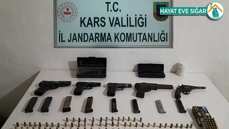 Kars İl Jandarma Komutanlığınca yapılan çalışmalarda ismi açıklanmayan 1 kişinin evinde silah ve mühimmat olduğu bilgisi alındı. Bunun üzerine harekete geçen jandarma, Arpaçay’da önceden adresi belirlenen eve operasyon düzenledi. Jandarma ekiplerince düzenlenen operasyonda şüphelinin evinde yapılan aramada, 5 adet ruhsatsız tabanca, 8 adet tabanca şarjörü, 154 adet mühimmat ve çok sayıda tabanca parçası ele geçirilerek muhafaza altına alındı.