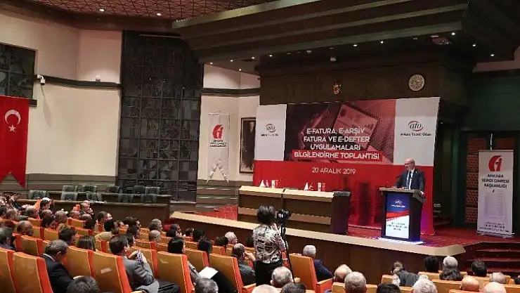 Teknolojik gelişmelere uyum ve kamu hizmetlerinin hızlı yürütülmesi açısından vergi mevzuatında yapılan değişiklerle birlikte kapsamı genişletilen ve 1 Ocak 2020 tarihinden itibaren uygulaması zorunlu olan elektronik belge ve defter uygulamaları Ankara Vergi Dairesi yetkilileri tarafından Ankara Ticaret Odası (ATO) üyelerine anlatıldı.