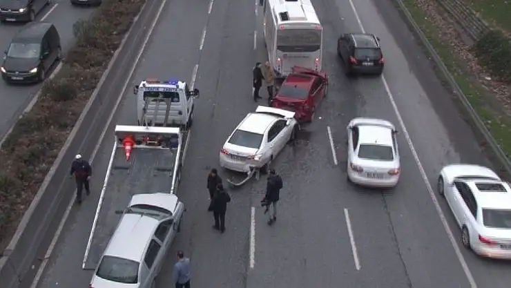 Bağcılar Yüzyıl Köprüsü'nde 4 aracın karıştığı zincirleme kazada, yaralanan olmazken, trafikte yoğunluk oluştu.
