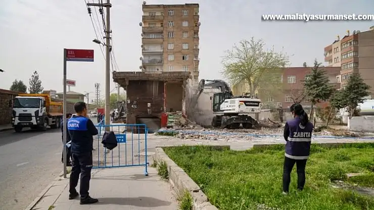 Belediye ekipleri, caddede alınan güvenlik önlemlerinin ardından yıkımı gerçekleştirdi. Yıkımın ardından çıkan molozlar kamyonlarla hafriyat döküm sahasına taşındı.