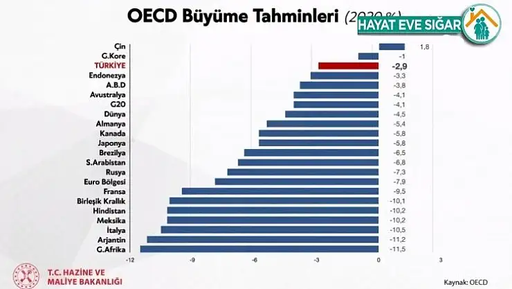 Hazine ve Maliye Bakanı Berat Albayrak, “OECD tahminlerine göre Çin ve Güney Kore’den sonra pandemiden ’en az etkilenecek’ 3’üncü ülke Türkiye" dedi.