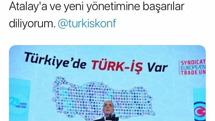 - Bakan Selçuk'tan yeniden başkanlığa seçilen Türk-İş Başkanı Atalay'a tebrik