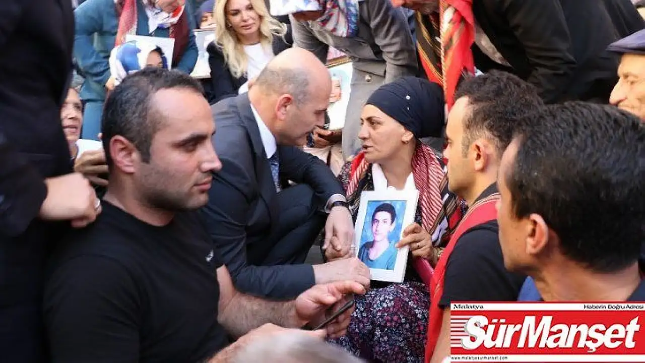 İçişleri Bakanı Süleyman Soylu, Kulp ilçesinde düzenlenen cenaze törenine katıldıktan sonra HDP Diyarbakır İl Başkanlığı önünde 11 gündür oturma eylemine devam eden aileleri ziyaret etti. Annelerle görüşen Bakan Soylu, annelerin yanında olduklarını söyledi. Çocukları terör örgütü mensupları tarafından kaçırılan annelerle sohbet eden Bakan Soylu, daha sonra basın mensuplarına açıklamalarda bulundu. Annelerin çocuğunun herkesin çocuğu olduğunu kaydeden Bakan Soylu, bu annelerin çocukları gibi bir çocuğu anneleri ile buluşturduklarını söyledi. Bakan Soylu, "Devam ediyor inşallah öteki çocuğunu da buluşturacağız, sabırla. Cumhurbaşkanımızın hem selamlarını getirdim hem de bu yaptıkları bütün Türkiye’ye ve bütün dünyaya ortaya konan haykırışa olan desteklerini getirdim. Kendi çocukları için burada değiller, bütün ülkemiz biliyor ki bundan sonraki tüm çocuklar için buradalar ve bütün ülkemizin çocukları için buradalar. Demiri eritecek yürekleri var. Bütün ülkemiz onları destekliyor. Bu yaptıkları mesele çok kıymetlidir. Terörle mücadele eden kardeşlerinizden birisi olarak söylüyorum, o kadar kıymetlidir ki bu on yıllar sonra çok daha iyi anlaşılacak. Bu bir terör örgütünün bir siyasi partinin terör örgütüne kendisini kullandırmasının sonunu oluşturacak hayırlı bir adımdır hem de güçlü bir adımdır. Bu annelerin evlatlarını da terör örgütünden kurtarabilecek en önemli adımdır. Bütün Türkiye onları destekliyor. Hepimiz onları destekliyoruz. Üzerimize düşen tüm sorumlulukları yerine getiriyoruz. Daha dün Diyarbakır’da bu annelerin evlatları gibi bir kız çocuğunun anneleri ile buluşturmanın ve bu kucaklaşmanın onurunu yaşadık. O kucaklaşma bir baba olarak söylüyorum yüreği olan gönlü olan insan olan herkesi başka bir noktaya taşır’’ diye konuştu.