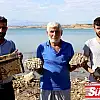 Gazeteciler ise baraj kıyısında bulunan tarihi yapıyı görüntülemek için dizlerine kadar balçığa battı. Tarihi yapıyı görüntüleyen gazeteciler daha sonra balıkçı teknesiyle baraj kıyısından görüntü aldı.