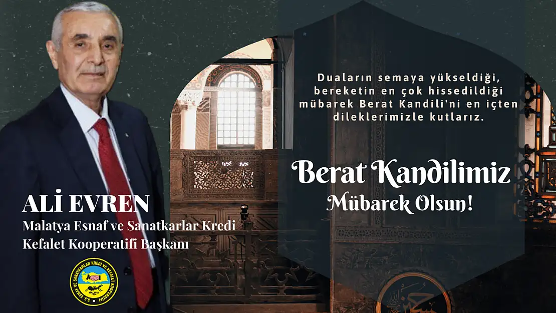 ESKKK Başkanı Ali Evren, Berat Kandili dolayısıyla yayımladığı mesajında, toplumun huzur ve barış içinde yaşaması için dua etti ve birlik beraberlik vurgusu yaptı.