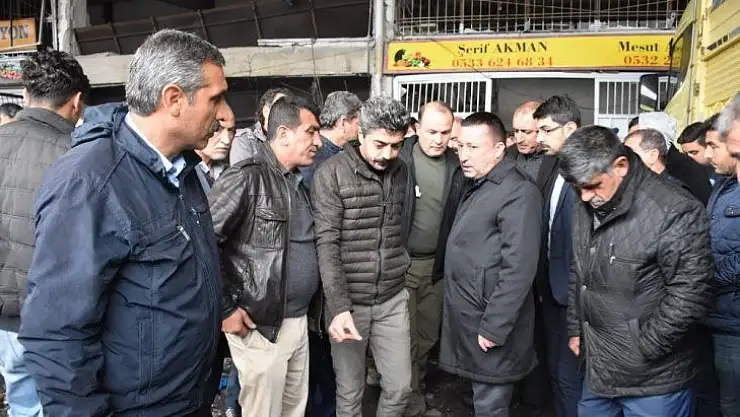 Başkan Beyoğlu patlama meydana gelen sebze ve meyve halinde incelemelerde bulundu