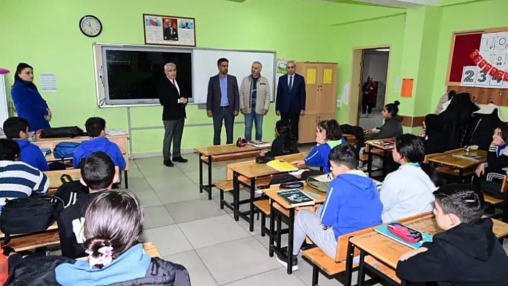 Başkan Güder, ortaokulda eğitim gören öğrencilerin Liselere Geçiş Sistemi (LGS) sınavında kendilerine destek olacak eğitim seti hediyesini İnönü Ortaokulu’nda düzenlenen programa katılarak verdi.