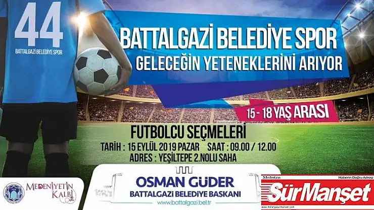Battalgazi Belediye Spor geleceğin yeteneklerini arıyor. Geleceğin yıldızlarını seçmek, alt yapısını güçlendirmek için çalışmalara hız veren Battalgazi Belediye Spor, 15-18 yaş arasında futbol seçmeleri yapıyor.