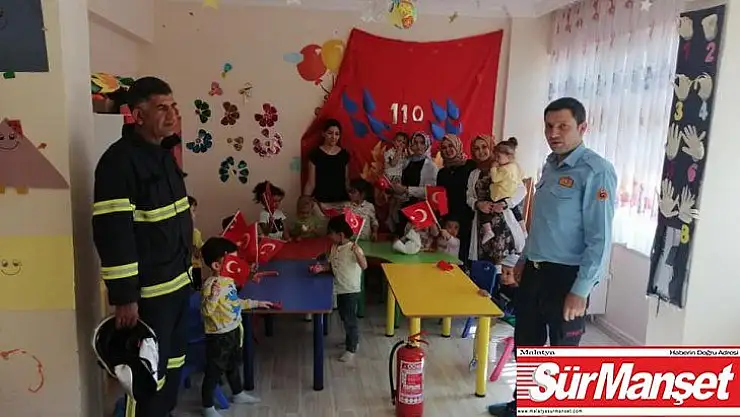 Miniklere, olası bir yangın durumunda hemen 110 İtfaiye hattının aranması ve çevreden yardım istenmesini istedi.