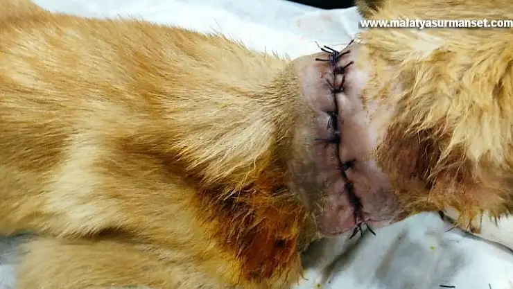 Gaziantep'te bir mesire alanında boğazı ve boynu kesilmiş halde bulunan sokak köpeği vatandaşların dikkatiyle kurtarıldı.