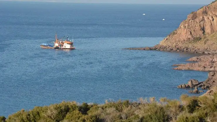 Çanakkale'nin Ayvacık açıklarında 35 metre uzunluğundaki gırgır teknesi karaya oturdu.
