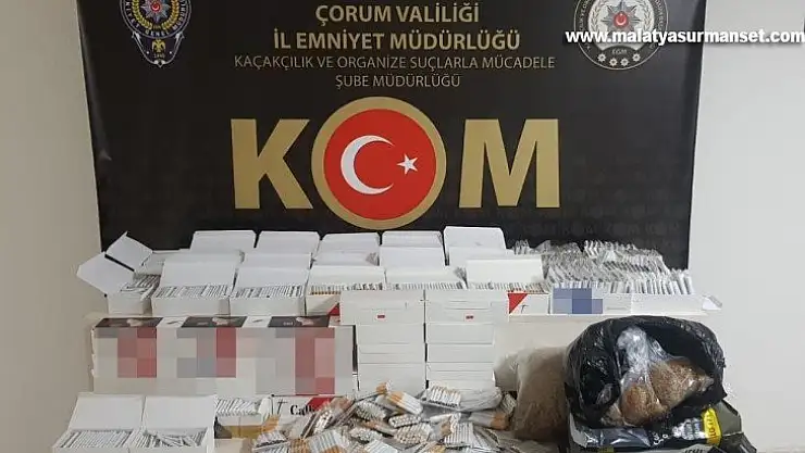 Çorum Emniyet Müdürlüğüne bağlı ekipler tarafından düzenlenen operasyonda çok sayıda bandrolsüz makaron ve kaçak tütün ele geçirildi.