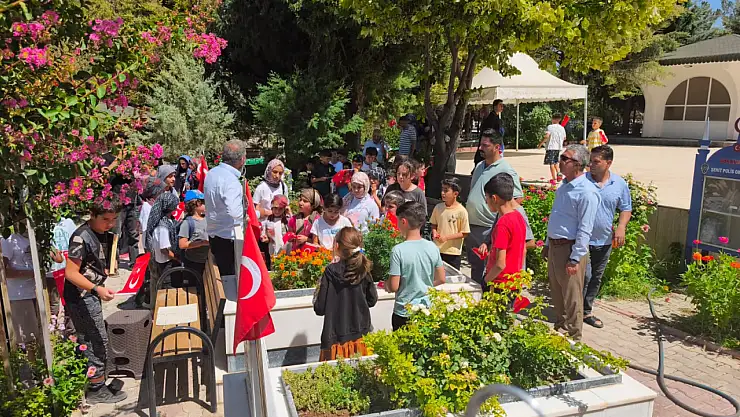 Çukurdere Mahallesi'nde yaz Kuran kursuna devam eden öğrenciler, milli bilinç ve şuurun en yoğun hissedildiği yerlerden biri olan şehitliği ziyaret ederek kabirler başında dua etti.