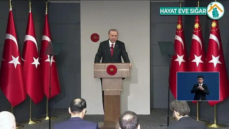 Salgınla ilgili alınan ekonomik destekleri anlatan Cumhurbaşkanı Erdoğan, “Bu salgının üstesinden gelecek sadece imkana değil, aynı zamanda morale ve kararlılığa sahibiz. Karamsarlığa da, rehavete de kapılmadan her türlü ihtimali göz önünde bulundurarak tedbir alıyoruz. Vatandaşlarımızın her birinin temel ihtiyaç malzemelerine ulaşma konusunda sıkıntıya düşmemesi için ne gerekiyorsa yapıyoruz. Alınan tedbirler özellikle bu sebeple çalışmaya ara veren şirketlerimizi istihdamı koruma şartıyla kısa çalışma şartıyla kısa çalışma ödeneğinden vergi ötelemesine ve krediye kadar her türlü araçla destekliyoruz. İstihdamın sürmesi en büyük kriterimizdir. Bu şartla üretimine ara veren azaltan işletmelerimizdeki çalışanlarımızın ücretlerinin asgari ücreti geçmeyecek şekilde 3’te 2’sini devlet olarak biz ödüyoruz. Doğrudan çalışanlarımızın hesabına yatırıyoruz. Aldığımız tedbirlerle 2 milyondan fazla mükellefin muhtasar, KDV ve prim ödemelerini 6 ay erteledik. Gelir vergisi mükellefi 2 milyona yakın vatandaşımız mücbir sebep hali kapsamına alınmıştır. Firmalara ve gerçek kişilere kredi ödemelerini asgari 3 ay erteleyebilmeleri için finansman desteği sağlıyoruz. Kamu bankalarımız müşterilerine pek çok kolaylık ve destek sağlıyor. Kredi geri ödemelerdeki süreyi 90 günden 180 güne çıkartarak takip sürelerini uzattık. İhracatçılara stok finansman desteği vererek üretimlerini sürdürmelerini teşvik ediyoruz. Kredi garanti fonunun destek rakamını ve kapasitesini artırdık. Belediyelerin salgınla mücadelesine destek vermek için vergi payı ödemelerinden yapılan kesintileri 3 ay süreyle kaldırarak bu kurumlarımıza 3 milyar liralık kaynak sağladık. Vergi, sigorta, kredi ödemelerine sağladığımız kolaylıklara bir yenisini daha ekliyoruz. KOSGEB geri ödeme desteklerinden faydalanan 136 bin işletmemize nisan, mayıs, haziran ayları itibariyle yapacakları banka kredi ödemelerini erteleme imkanı sağlıyoruz. Bu ertelemelerden kaynaklanacak maliyeti KOSGEB üstlenecektir. Emeklilerimizin en düşük maaşlarını bin 500 liraya çıkartarak hem de ikramiye ödemelerini öne çekerek rahatlattık. Düşük gelirli 2 milyon 100 binin üzerinde haneye biner lira nakit yardımı yaparak bu sıkıntılı günlerde garip gurabayı sahipsiz bırakmadık. Şimdi 2 milyon 300 bin haneye daha yardım ulaştırmak için hazırlıklara başladık. Özellikle yevmiyeyle günlük kazançla hayatını sürdürmek zorunda olan hiçbir geliri olmayan vatandaşlarımıza çağrıda bulunuyorum. Valilik ve kaymakamlıklarımıza telefonla başvuru yaparak durumunuzu anlatmanız yada elektronik devlet olarak başvurmanız halinde devletimiz sizlere de her türlü destek verecektir” diye konuştu.