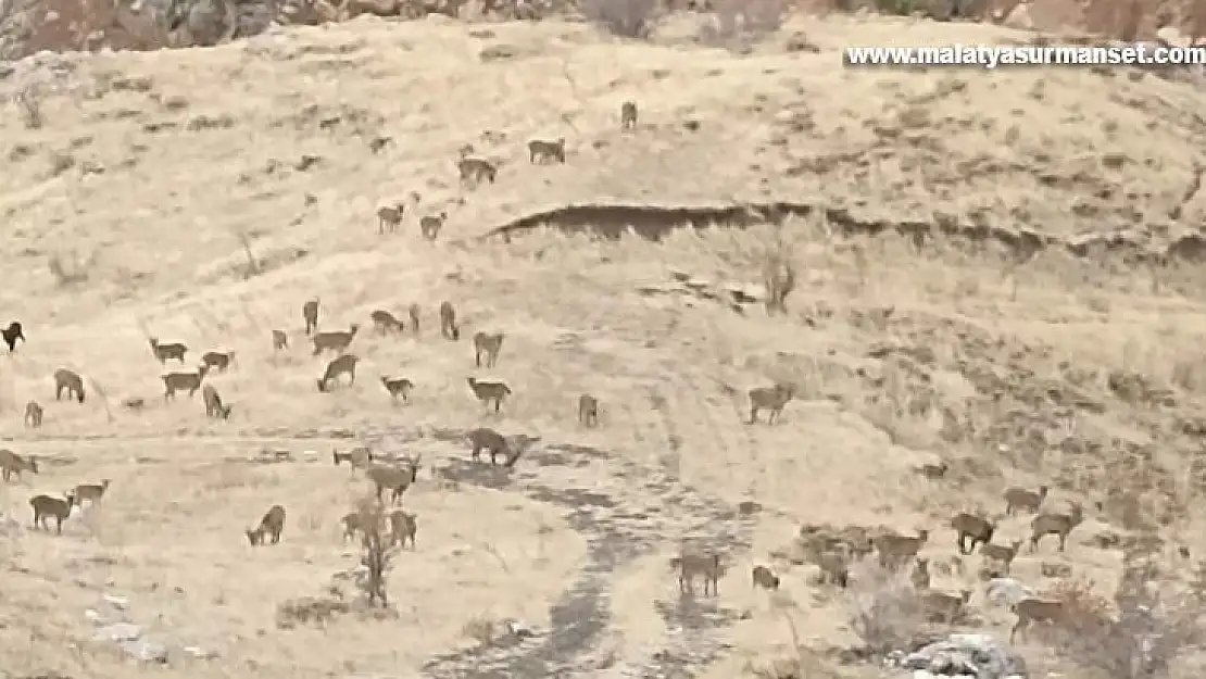 Adıyaman'ın Sincik ilçesinde dağ keçileri sürü halinde ilçe girişindeki boğaz mevkiine indi.