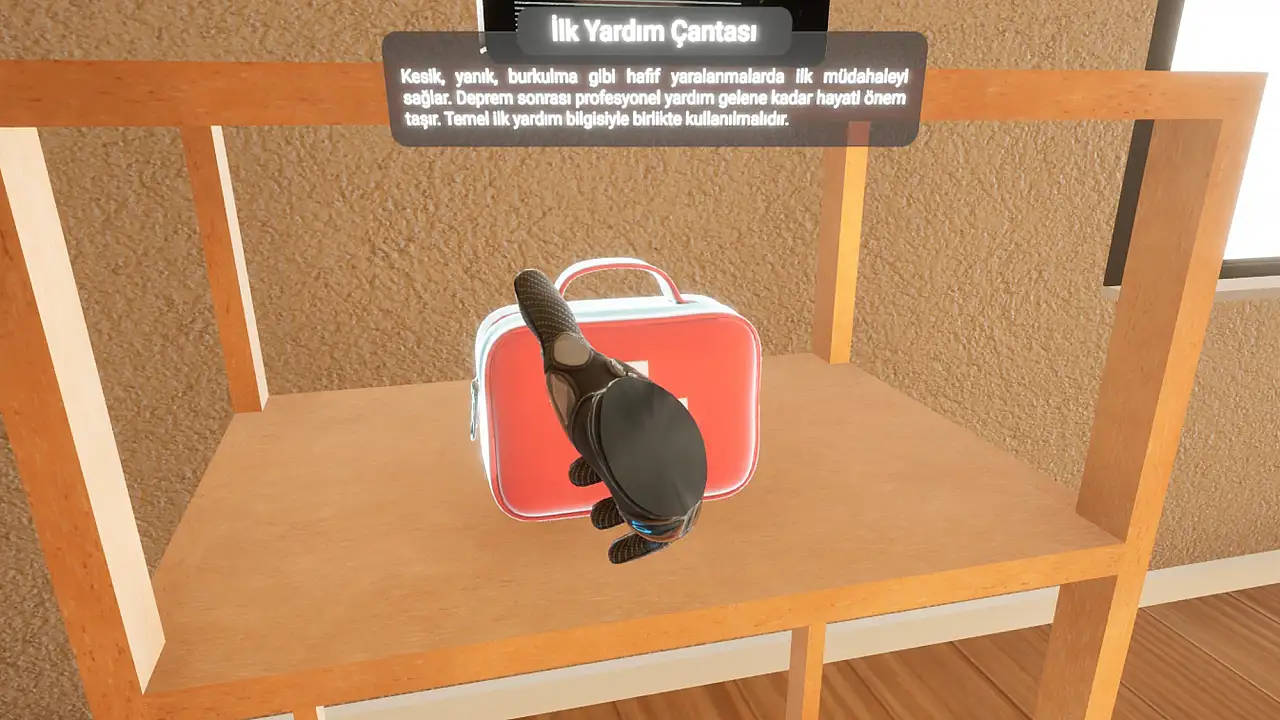 Tüm eşyaların doğru şekilde toplanmasıyla deneyimi başarıyla tamamlayan kullanıcı, deprem çantasını nasıl doğru hazırlayacağını birebir yaşayarak öğreniyor. Bu çalışma, sanal gerçeklik teknolojisinin etkileşim gücünü eğitimle birleştirerek farkındalık oluşturmayı amaçlıyor. Özellikle gençler ve öğrenciler arasında afet bilincini artırmak amacıyla tasarlanan proje, gerçek bir depremi beklemeden, güvenli bir ortamda doğru reflekslerin geliştirilmesini sağlıyor.