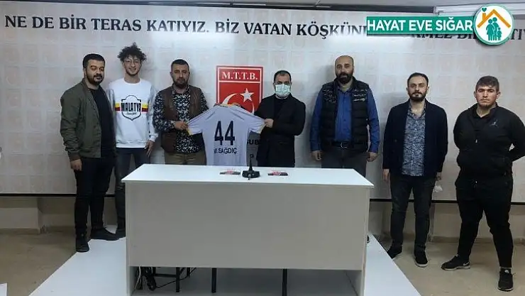 Ziyarette Malatyaspor Derebeyleri Taraftarlar Derneği Başkanı Ender Kaya, Sağdıç’a üzerinde adının yazdığı 44 numaralı Yeni Malatyaspor forması hediye etti.