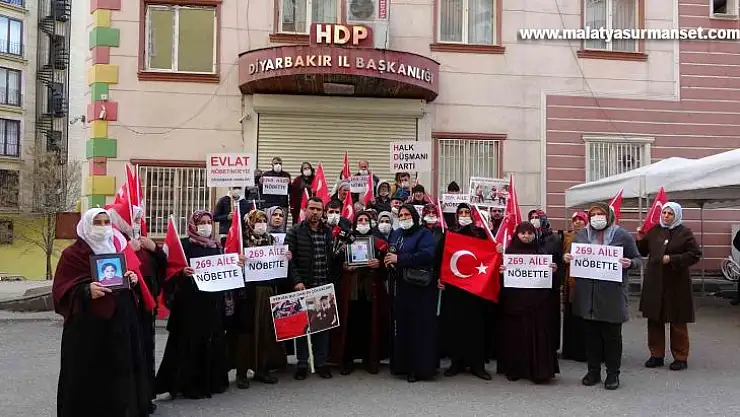 Çocuklarının terör örgütü PKK tarafından dağa kaçırıldığı iddiasıyla HDP Diyarbakır İl Başkanlığı önünde evlat nöbeti tutan ailelerin direnişi, devam ediyor, sayıları 269'a çıktı.