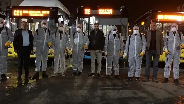 Her gün yapılan rutin temizlik dışında kent merkezi ve ilçelerde vatandaşlara hizmet eden araçlar uluslararası kalite belgeli, Sağlık Bakanlığı ruhsatlı korozif, kanserojen ve genlere zarar vermeyen, cildi, gözleri tahrip etmeyen maddelerle, özel giysisi, maskesi ve eldiveni bulunan personel tarafından püskürtme cihazıyla yolcu tutamak ve tutamak boruları, koltuk ve kapı tutma yerleri gibi temasın yoğun olduğu yerler titizlikle dezenfekte ediliyor.